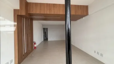 Loja comercial a poucos metros do mar, com banheiro social e box estacionamento e aproximadamente 64,00 metros quadrados.